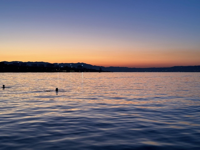 On our second evening at Villa Lovorka we decide to try another restaurant instead of Pipo as they other places nearby also have good reviews on Google. We go to Pizzeria Ruza. It has better scores than Pipo but personally I liked the food at Pipo a lot better. Still, the food isn’t bad and prices are low. And we can sit at a table outside with a nice view of the see while it gets dark. So good points on atmosphere for sure.